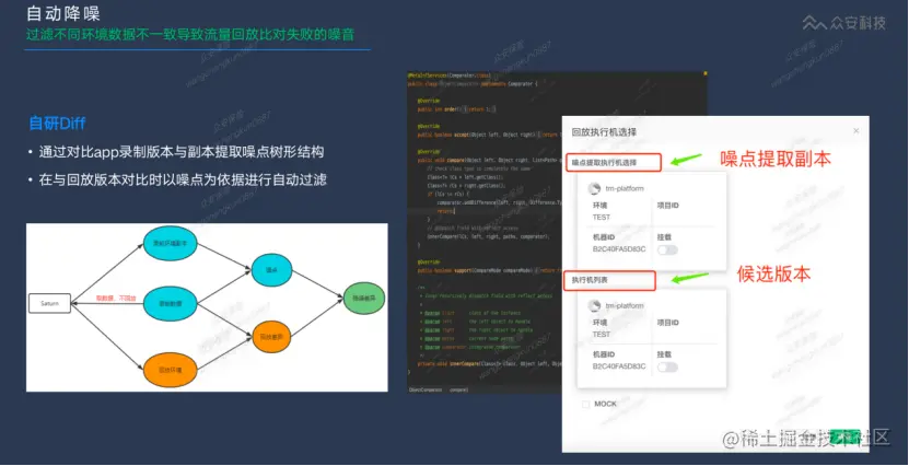 众安汲取opendiffy通过稳定版本和稳定版本副本差异这种噪点提取的思想,自研了自动降噪过滤的逻辑。