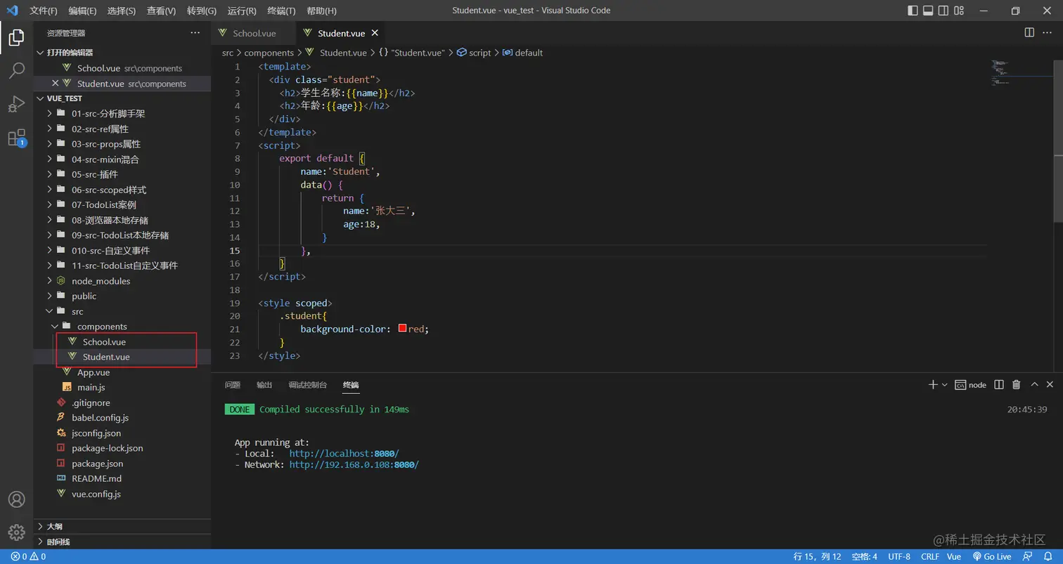 首先准备两个组件,它们之间是兄弟关系,被App统一管理