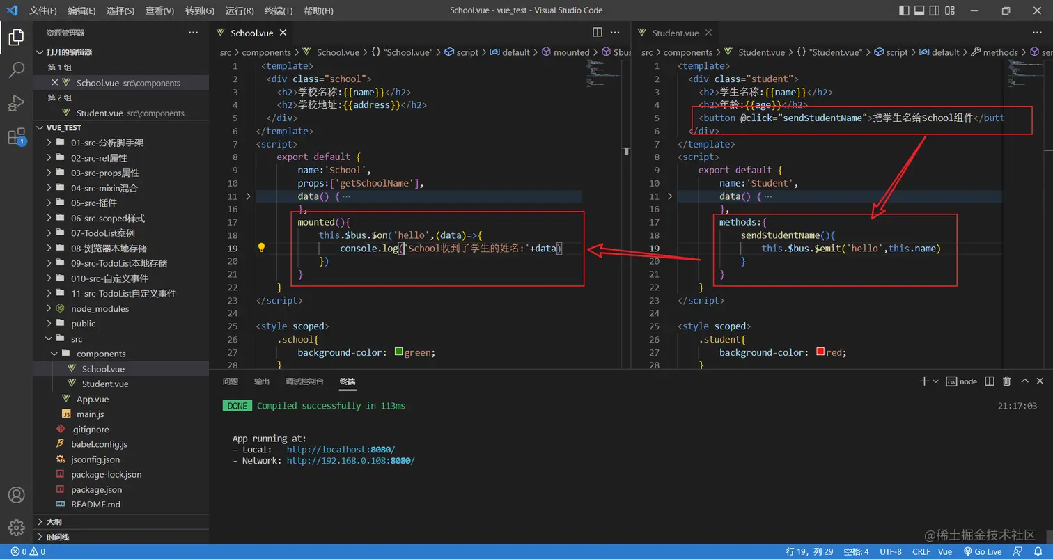methods(){ demo(data){......} } ...... mounted() { this.$bus.$on('xxxx',this.demo) } - 提供数据:his.emit('xxxx',数据)
