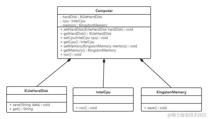 组合表示类之间的整体与部分的关系,但它是一种更强烈的聚合关系。