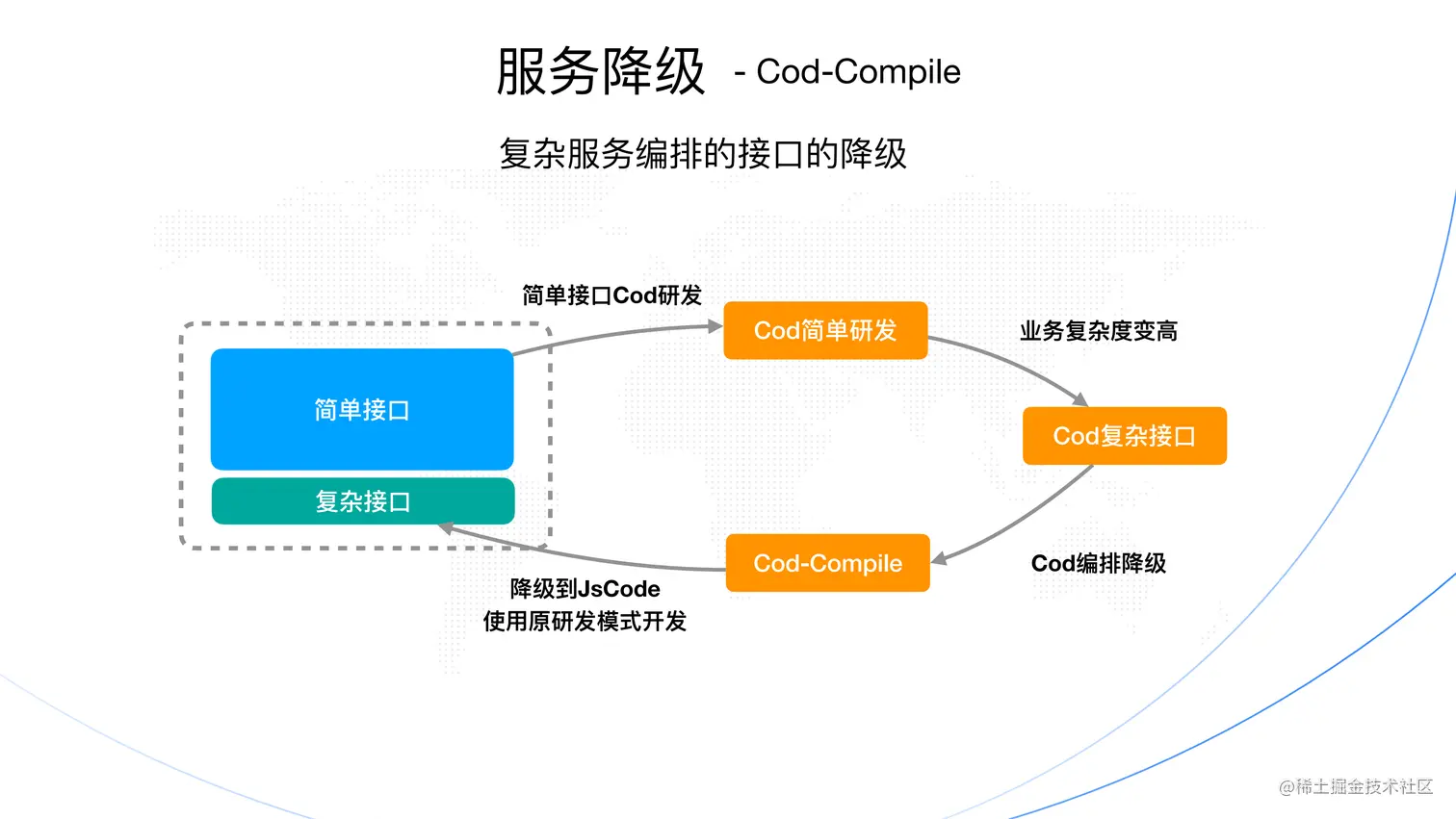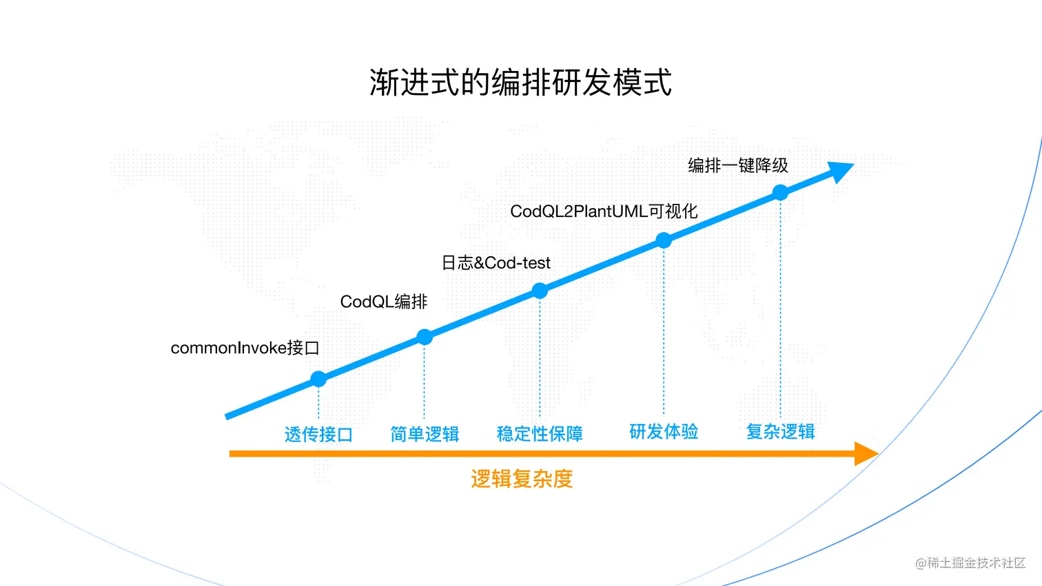所以我们决定用最轻量的服务编排的方式来解决 80%的简单场景问题,还有 20% 的复杂场景仍使用原来的开发方式。我们也对这种编排方式取了一个名字,C,O,D,cod,就是上方这个标题,code 去除一个e,让编码少一点的语义。