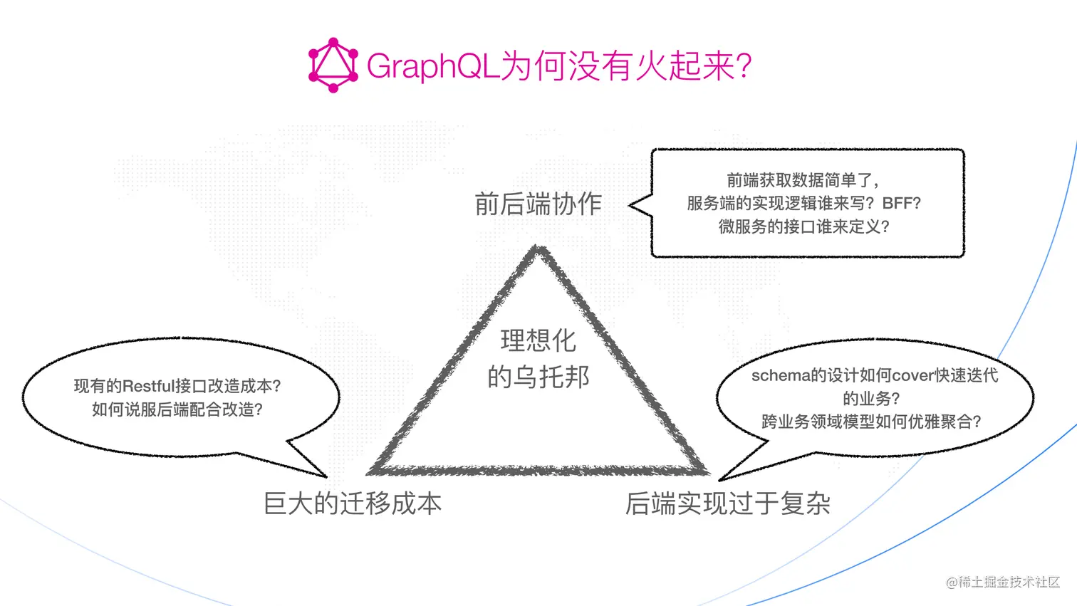 关注过 GraphQL 的同学应该有看到过在知乎上关于 GraphQL 最热闹的话题就是“GraphQL 为何没有火起来?”,GraphQL 在2015年就推出了,而现如今对大多数的 BFF 系统还都是基于 RESTFUL 的规范,真正能够将 GraphQL 玩转,并应用在生产中的还是少数。