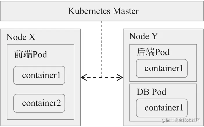 Kubernetes程序自身更像是构建在底层主机组成的集群之上的“云操作系统”或“云原生应用操作系统”,而容器是运行其上的进程,Pod类似于单机操作系统上的“进程组”,它包含一到多个容器,却是Kubernetes上的最小调度单元,因而同一Pod内的容器必须运行于同一工作节点之上,如图1-7所示。