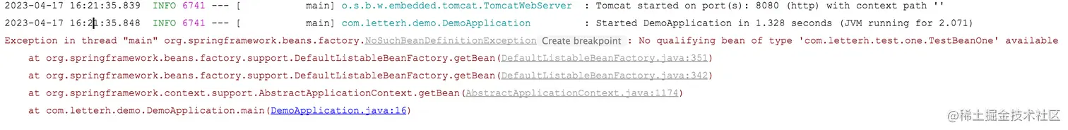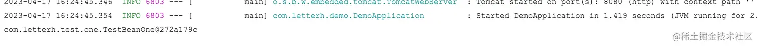 再次运行demo工程,发现这次可以正常获取到test工程中的TestBeanOne实例了