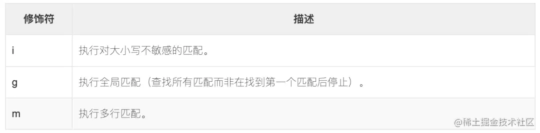 正则修饰符:配合正则表达式使用,用来对正则规则进行补充说明。