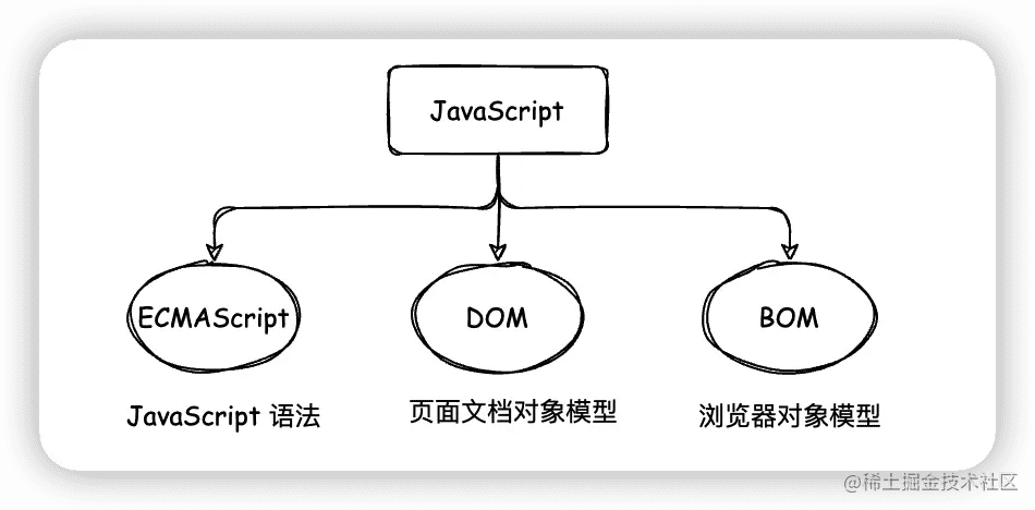 ECMAScript : - JavaScript的核心,ECMAScript是一套标准,规范了语言的基本语法和数据类型,定义了一种语言的标准,与具体实现无关