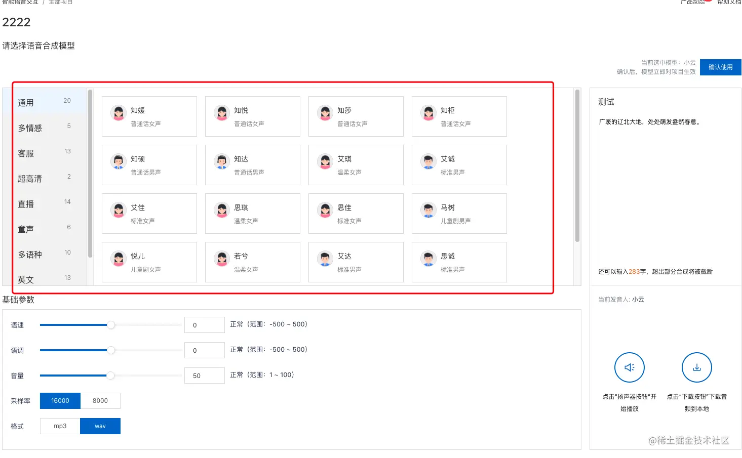 - 阿里云智能语音根据指定的音频合成模型,生成对应的音频文件。