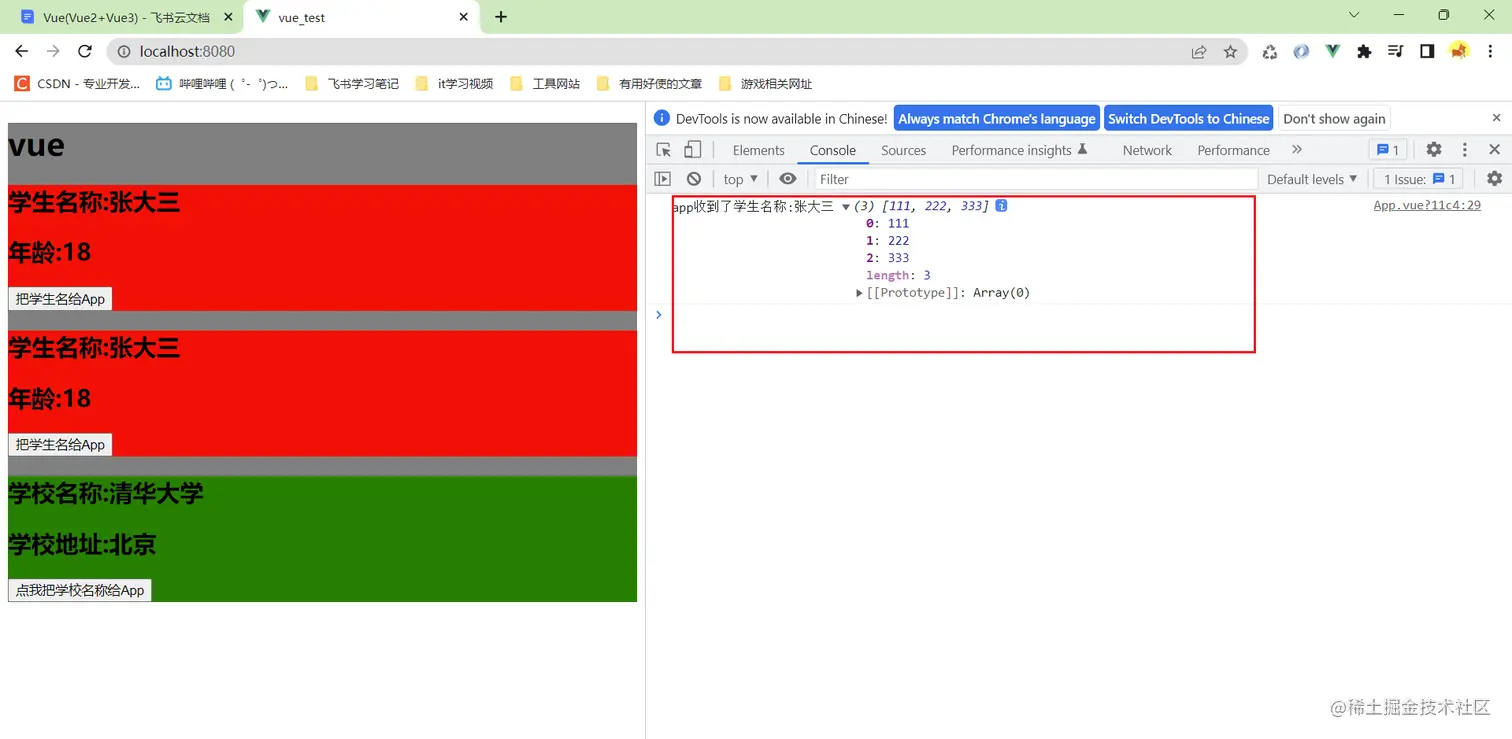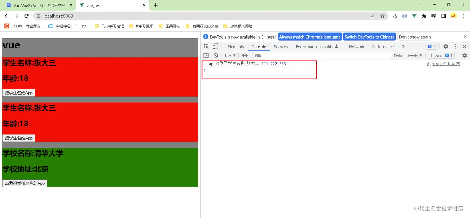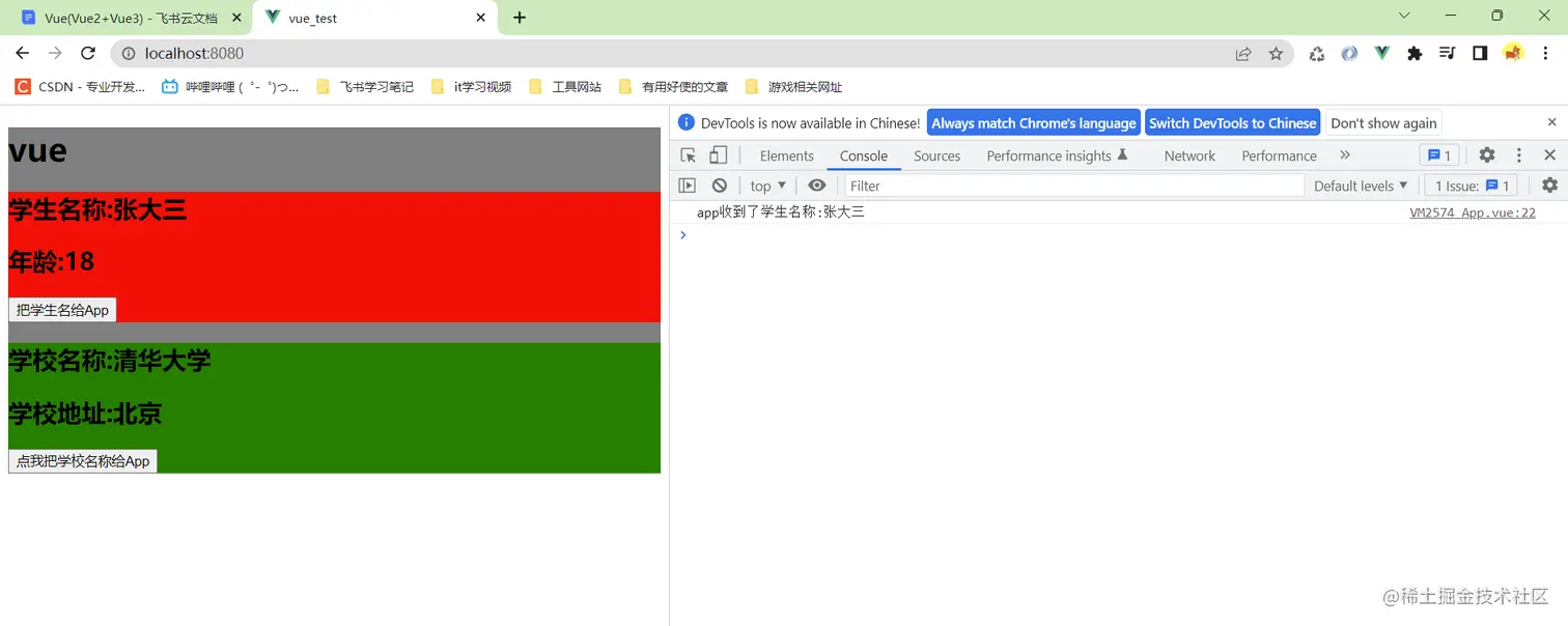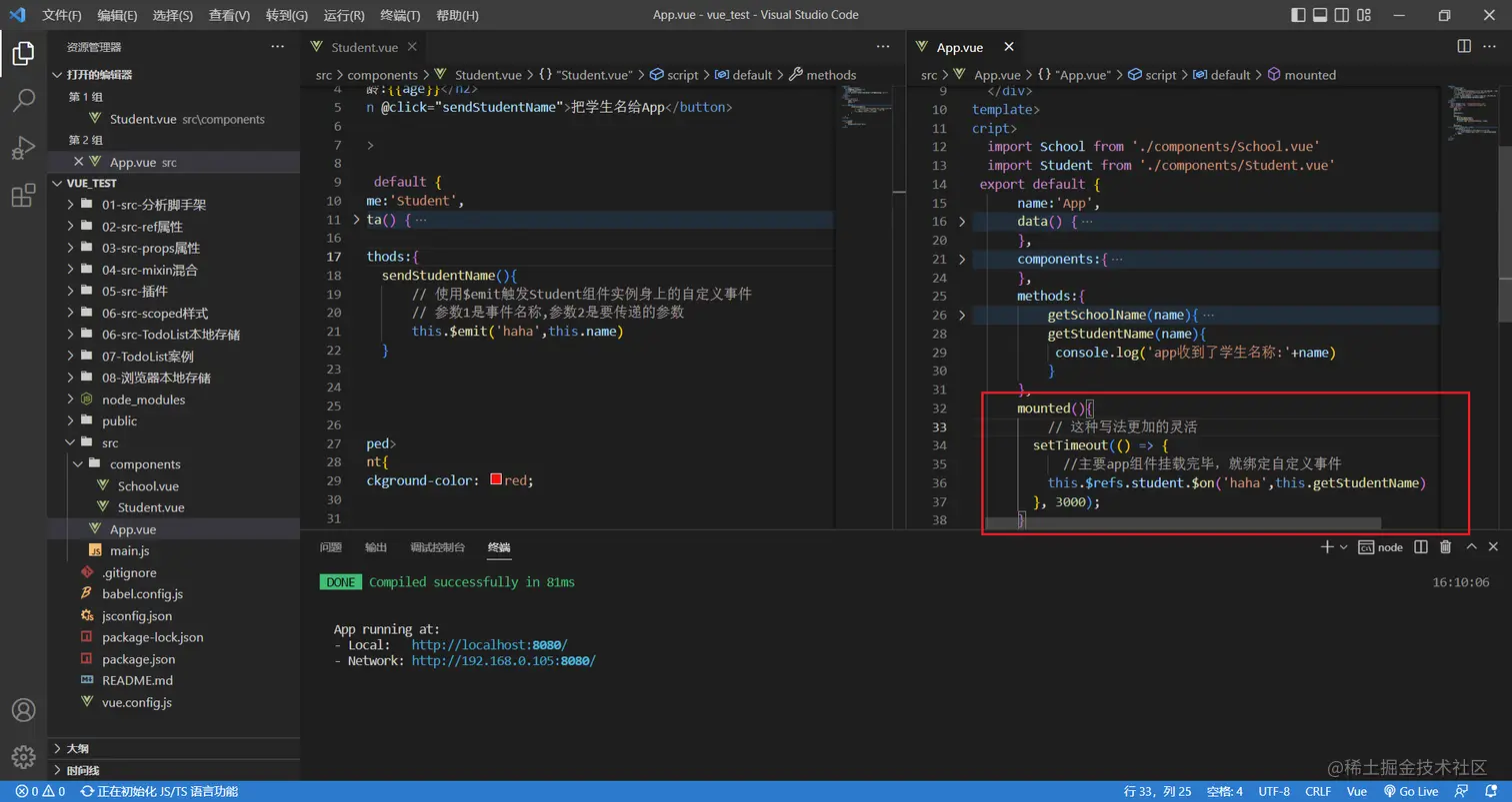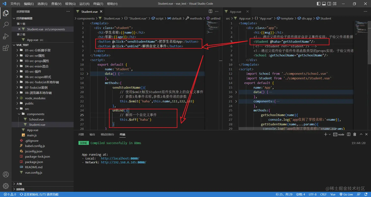 如果我还想继续给student一个按钮,点击的时候把学生姓名给app组件呢?这次不用props了,使用自定义事件实现
