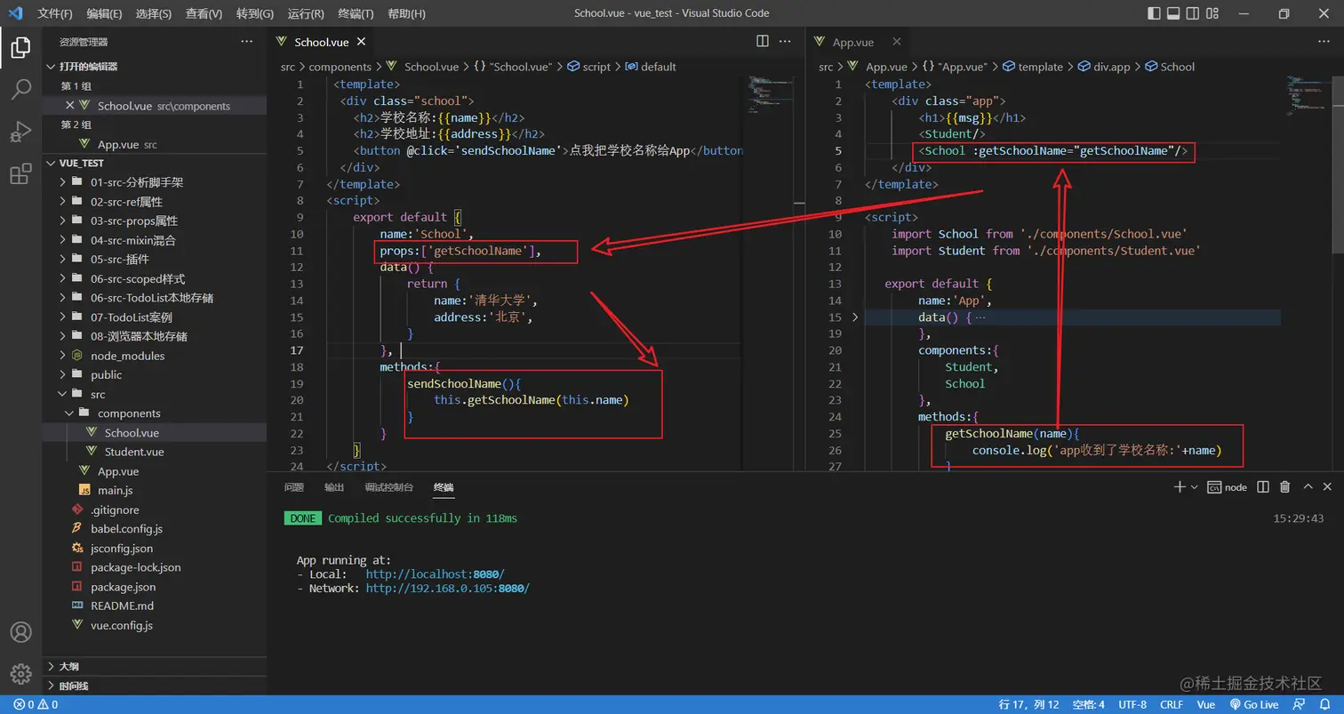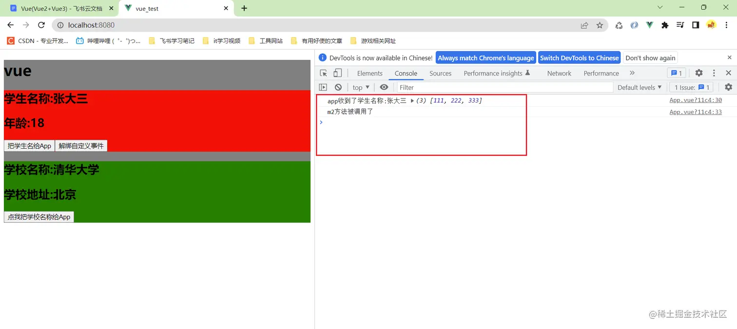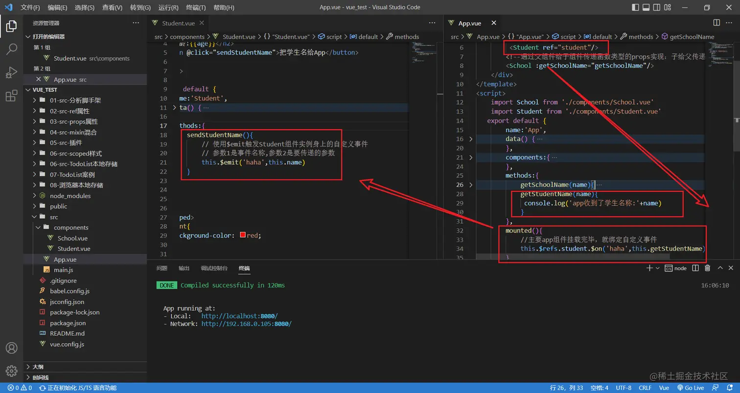 this.$refs.xxx.$on('atguigu',回调)绑定自定义事件时,回调要么配置在methods中,要么用箭头函数,否则this指向会出问题!