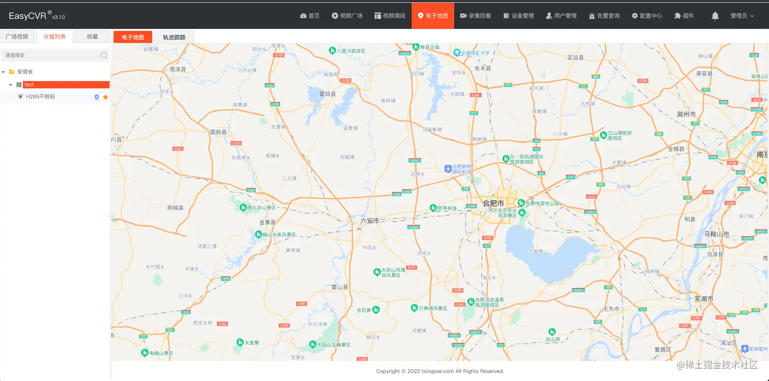 关于EasyCVR电子地图功能的相关介绍,我们在此前的文章中也分享过不少,感兴趣的用户可以翻阅我们往期的文章进行了解。EasyCVR平台的电子地图功能,可将前端接入的设备(摄像头、车载监控、单兵、执法仪等)在GIS电子地图上实时显示,并且支持点击图标就能观看当前设备的实时视频监控,还可支持绘制历史行驶轨迹、历史轨迹回放等。
