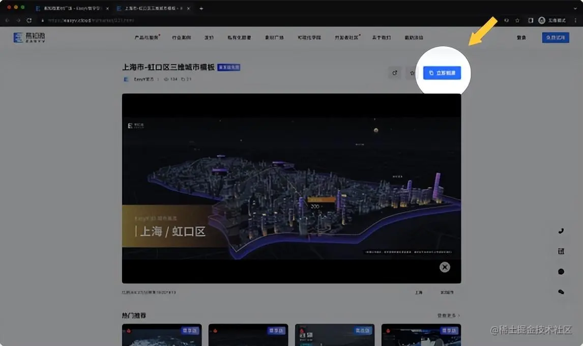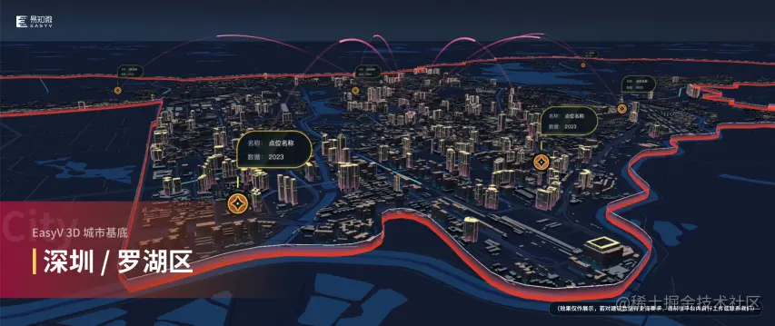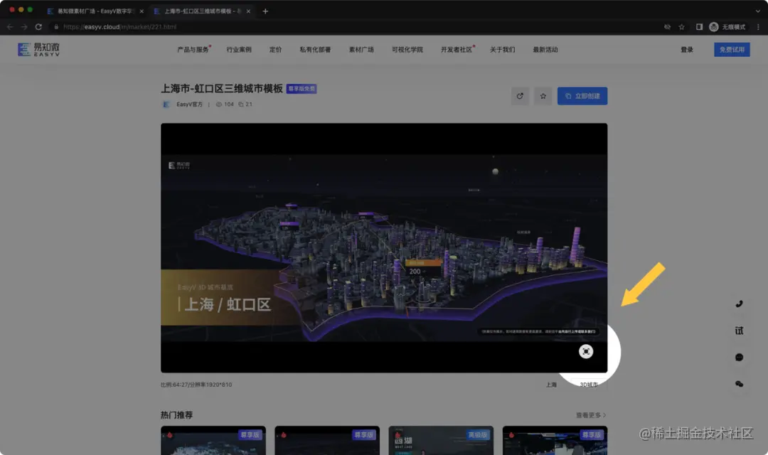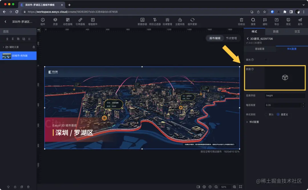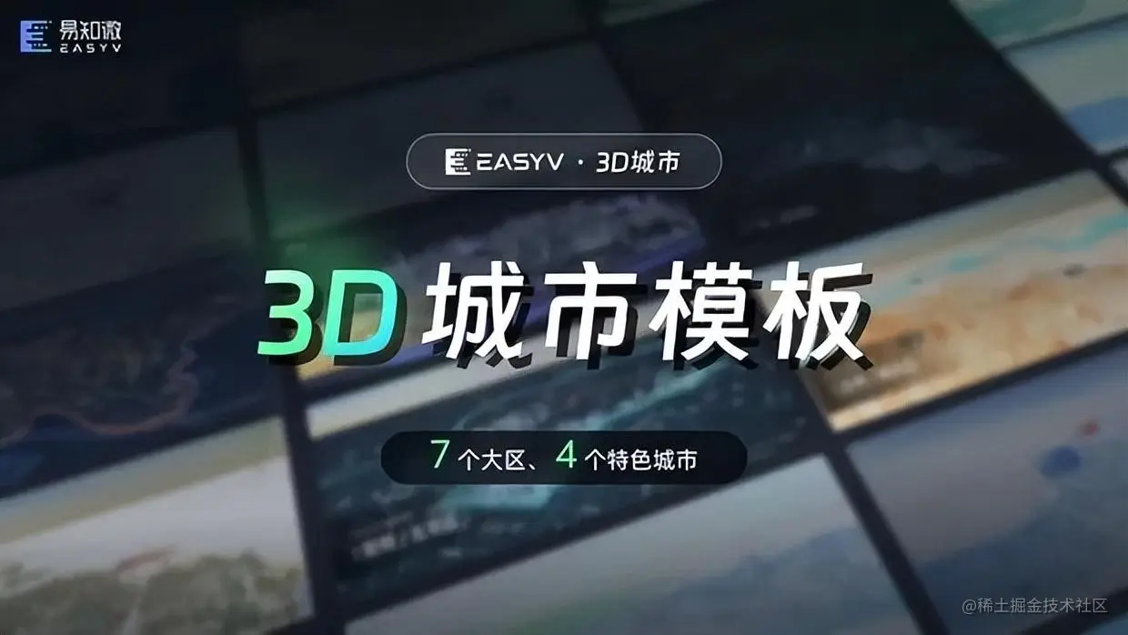 3D 城市基底素材基于3D城市组件(抢先版)制作,模板素材面向 EasyV 尊享版用户免费开放,3D 城市组件面向 EasyV 高级版及以上用户免费开放。(tips:3D 城市属于实时动态渲染的组件,为了流畅性,建议避免使用性能过低的电脑浏览和操作)