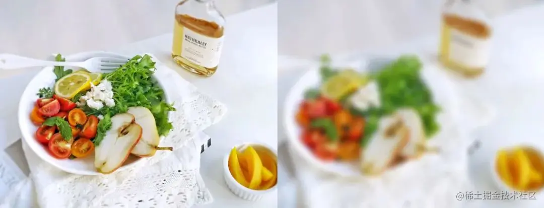 从视觉上,两张图片,有一张是模糊的,那么,在实现图片模糊效果之前,我们首先需要了解图片模糊的本质是什么?