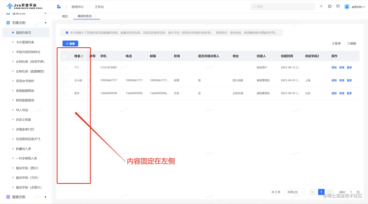 如果字段过多,希望字段在横向拖动的时候,保持有序列一直展示,如下图所示: