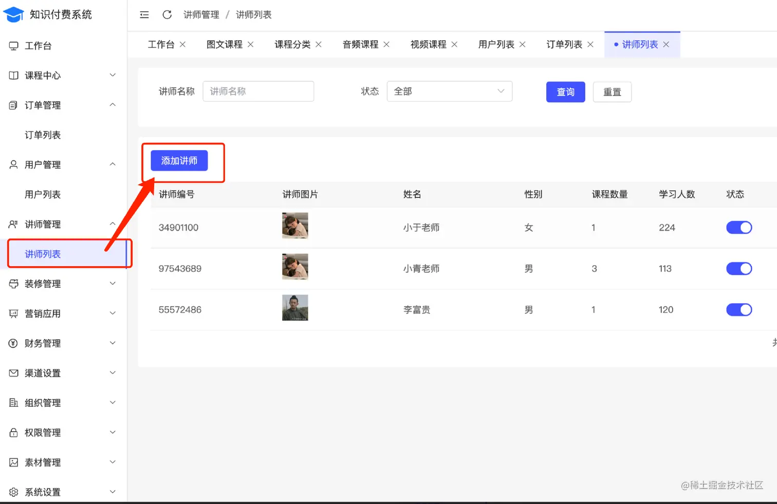 4.讲师管理