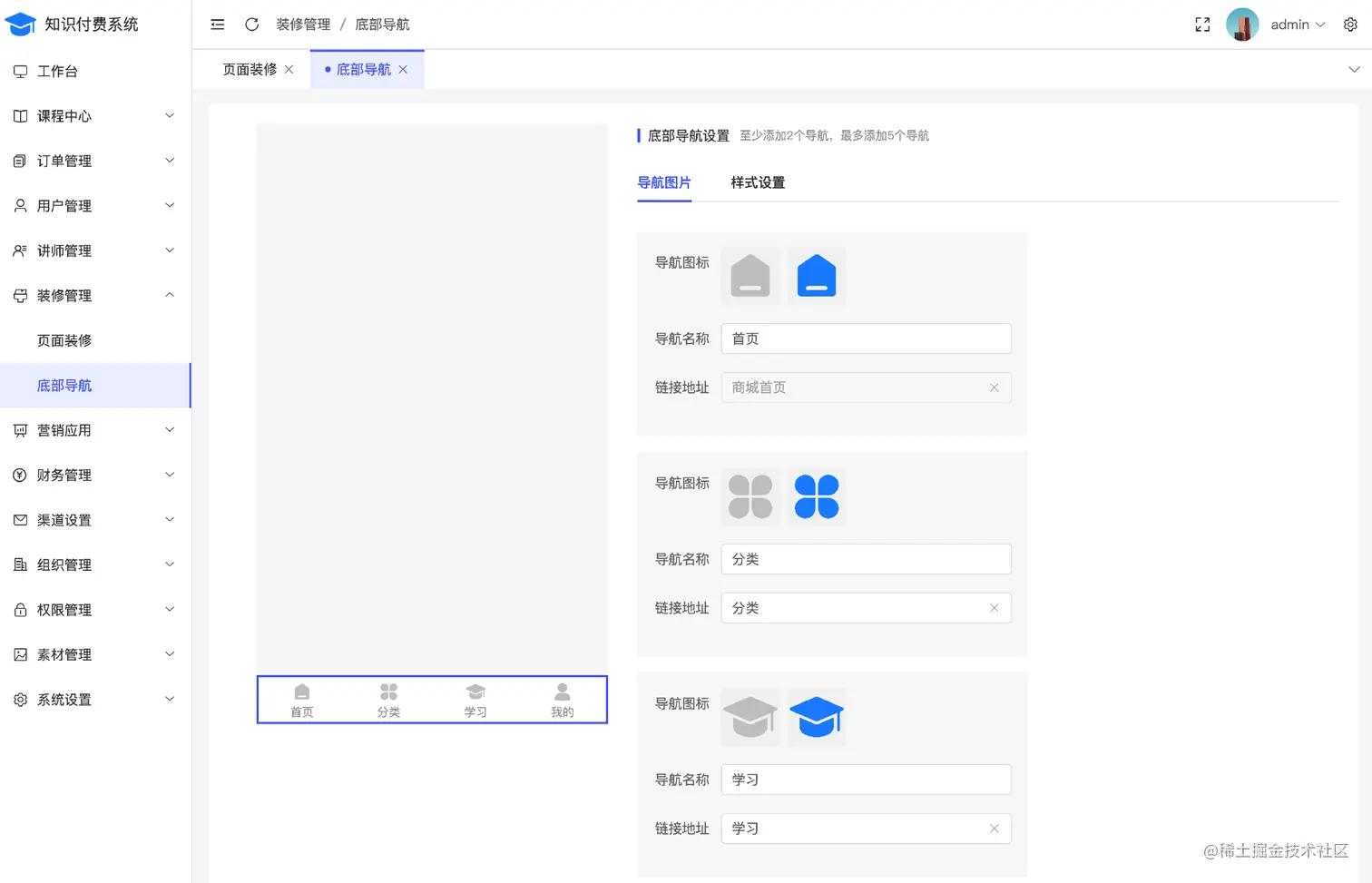 页面装修和底部导航装修