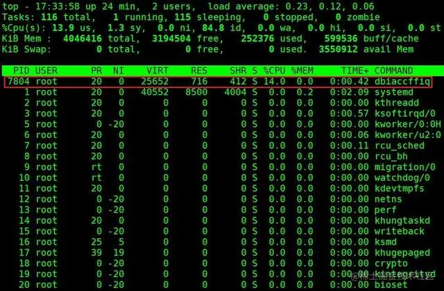 再次杀掉top命令中看到的异常进程,观察一段时间后不会再有新的进程启动