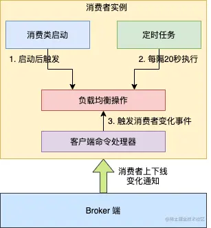 消费者上下线,Broker 端通知消费者触发负载均衡。
