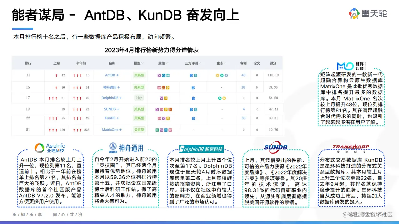 其中,墨天轮社区已与人民邮电出版社达成合作,未来将围绕数据库技术内容及墨天轮品牌内容展开更深度的合作,助力行业繁荣发展。此处因篇幅所限仅截选部分内容,具体内容可查阅报告。