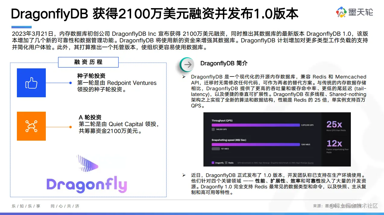 为帮助大家掌握更多行业最新要闻、资讯,我们对近期行业重大产品发布、投融资等资讯及交流活动进行了整理。其中,介绍了行业热议的腾讯云数据库8.14亿登顶 TPC-C 排行榜、2023年数据技术嘉年华成功举办等资讯;并对 openGauss 5.0.0 版本、Oracle Database 23c 免费开发者版的正式发布进行介绍;此外,展示了内存数据库初创公司 DragonflyDB Inc 以及泽拓科技获得新一轮融资等资讯。此处因篇幅所限仅截选部分内容,具体内容可查阅报告。