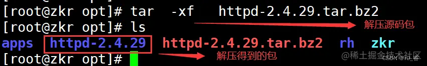 1.tar -xf httpd-2.4.29.tar.bz #解压源码包