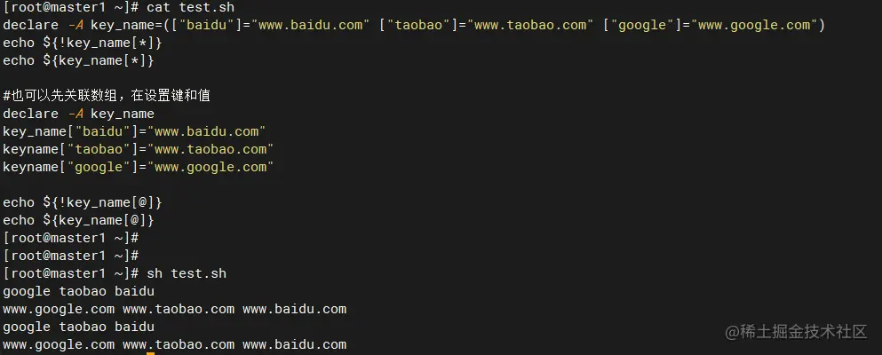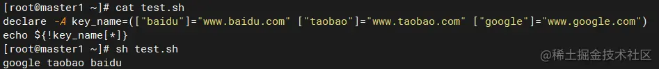 declare -A key_name=(["baidu"]="www.baidu.com" ["taobao"]="www.taobao.com" ["google"]="www.google.com")