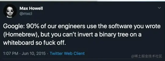 谷歌:我们90%的工程师都在使用您编写的(Homebrew)这款软件。但是您不能在白板上写出一个反转二叉树的程序。那么请滚蛋。那么为什么大厂坚持用算法来筛选人才呢?