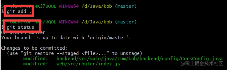 Git基本操作 Seft 2023-05-05 68 阅读1分钟 一、查看文件状态 git status 查看当前文件夹下 有多少文件没有被收入到仓库中去 二、将文件收入到仓库里 git add . 将当前文件夹下未被收入到仓库里的文件添加到仓库中 随后输入git status 查看文件状态(已经变绿) 三、提交 git commit -m "" 将修改的代码提交到仓库中 四、推送 git puh 五、拉取 git pull (建议团队开放项目的时候,写代码之前先更新一下代码)