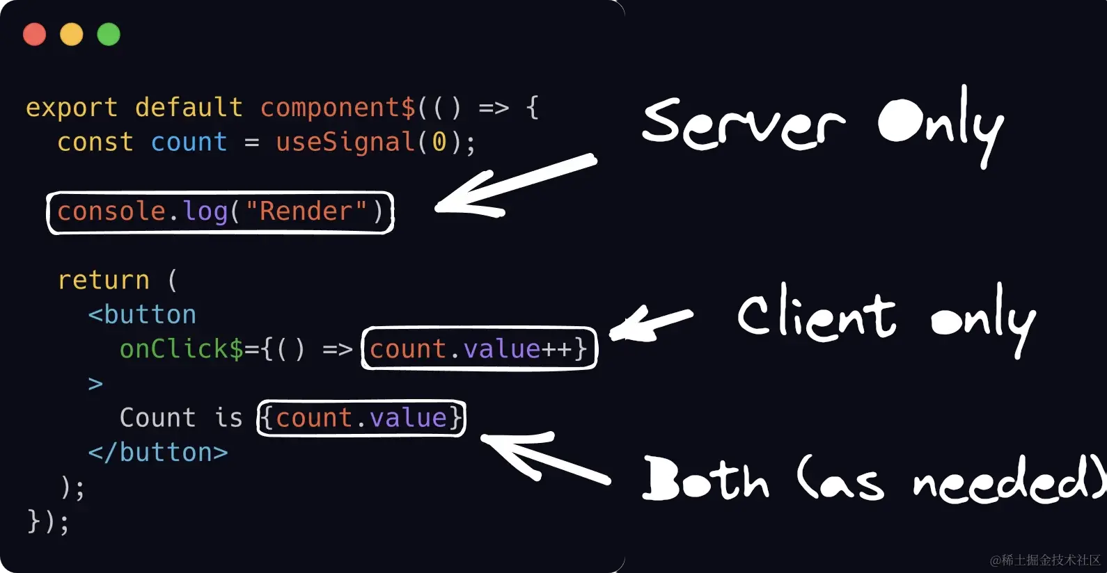 - 统一的执行模型:有了 Qwik,编写前端和后端代码时就会自然而然地在一个应用程序代码库和类型安全中结合起来。默认情况下,Qwik 应用程序在服务器和浏览器中执行,但很容易将函数固定为始终是服务器( server$() )(或始终是浏览器)。