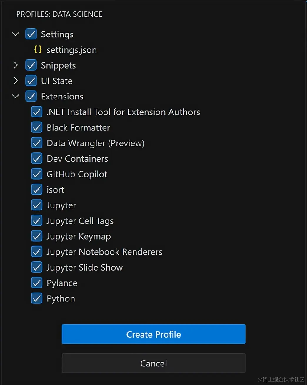 - 配置文件模板 - Python、Java、数据科学等的内置模板。