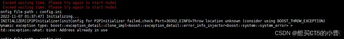 [INITIALIZER][P2PInitializer]initConfig for P2PInitializer failed,check Port=30302,EINFO=Throw location unknown (consider using BOOST_THROW_EXCEPTION)