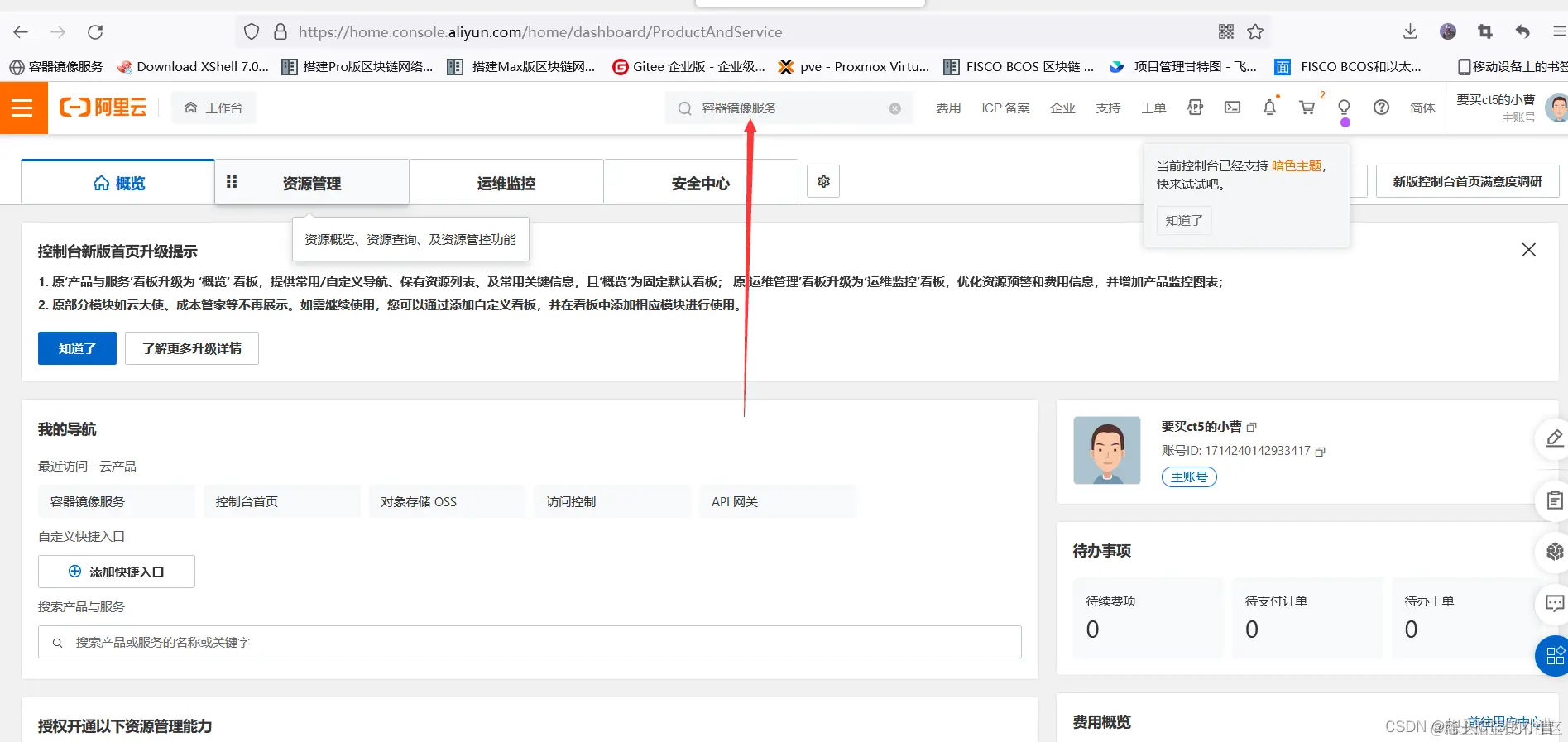 阿里云控制台首页https://home.console.aliyun.com/home/dashboard/ProductAndService