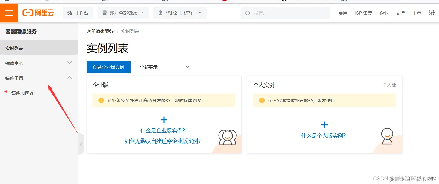 2、在搜索框中搜索容器镜像服务,选择镜像工具,镜像加速器