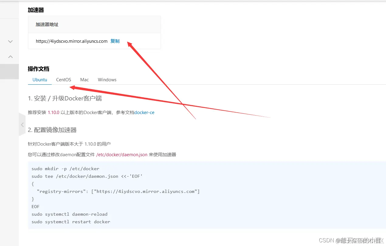 下面registry-mirrors所用的地址就是阿里云上面的加速器地址。