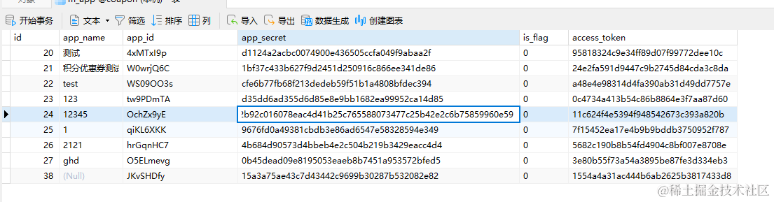 `app_secret` varchar(255) CHARACTER SET utf8 COLLATE utf8_general_ci NULL DEFAULT NULL COMMENT '秘钥',