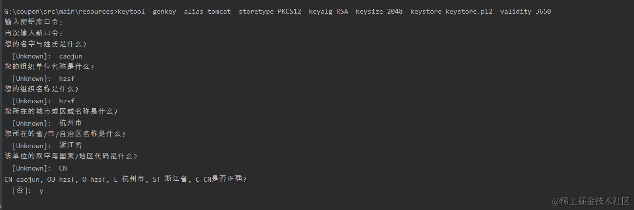 keytool -genkey -alias tomcat -storetype PKCS12 -keyalg RSA -keysize 2048 -keystore keystore.p12 -validity 3650