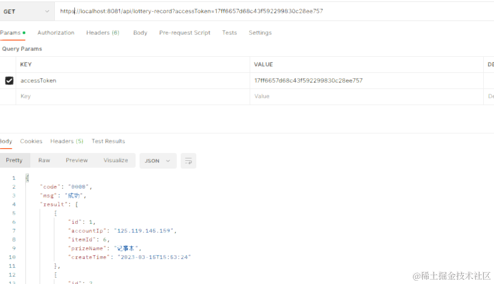 效果图:postman测试