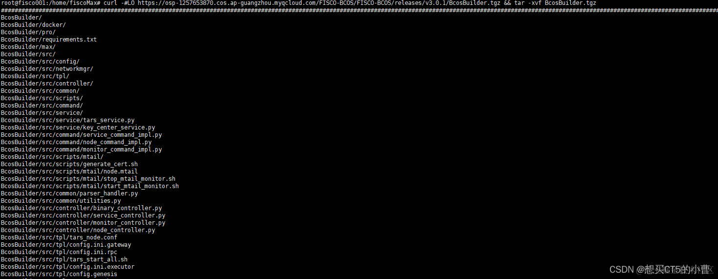 curl -#LO osp-1257653870.cos.ap-guangzhou.myqcloud.com/FISCO-BCOS/… && tar -xvf BcosBuilder.tgz