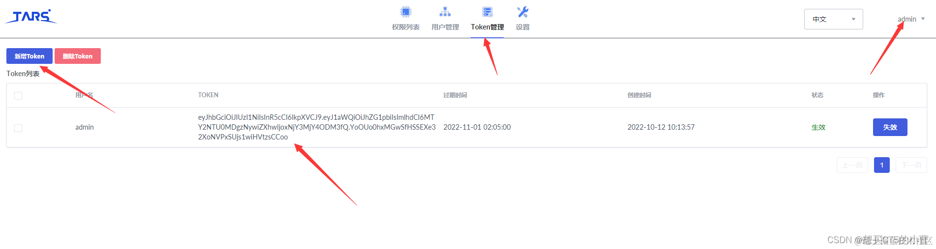 admin--》用户中心--》TOKEN管理--》新增Token
