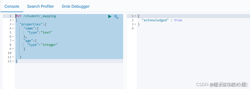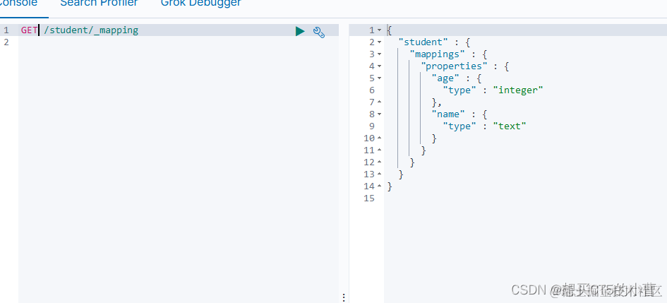 mapping定义了每个字段的类型、字段所使用的分词器等。相当于关系型数据库中的表结构。