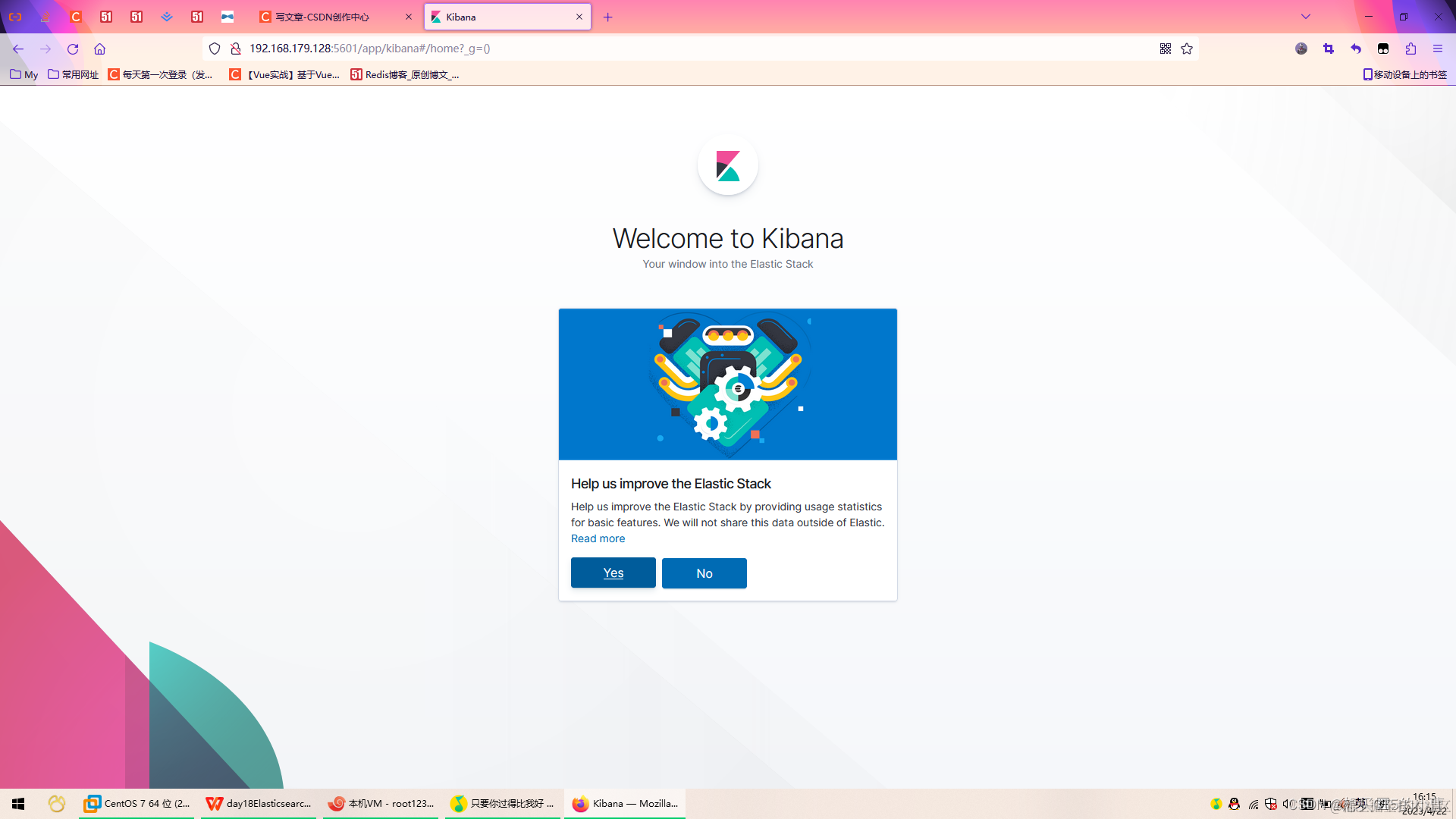 需要注意你自己虚拟机的 ip,然后端口是5601。
