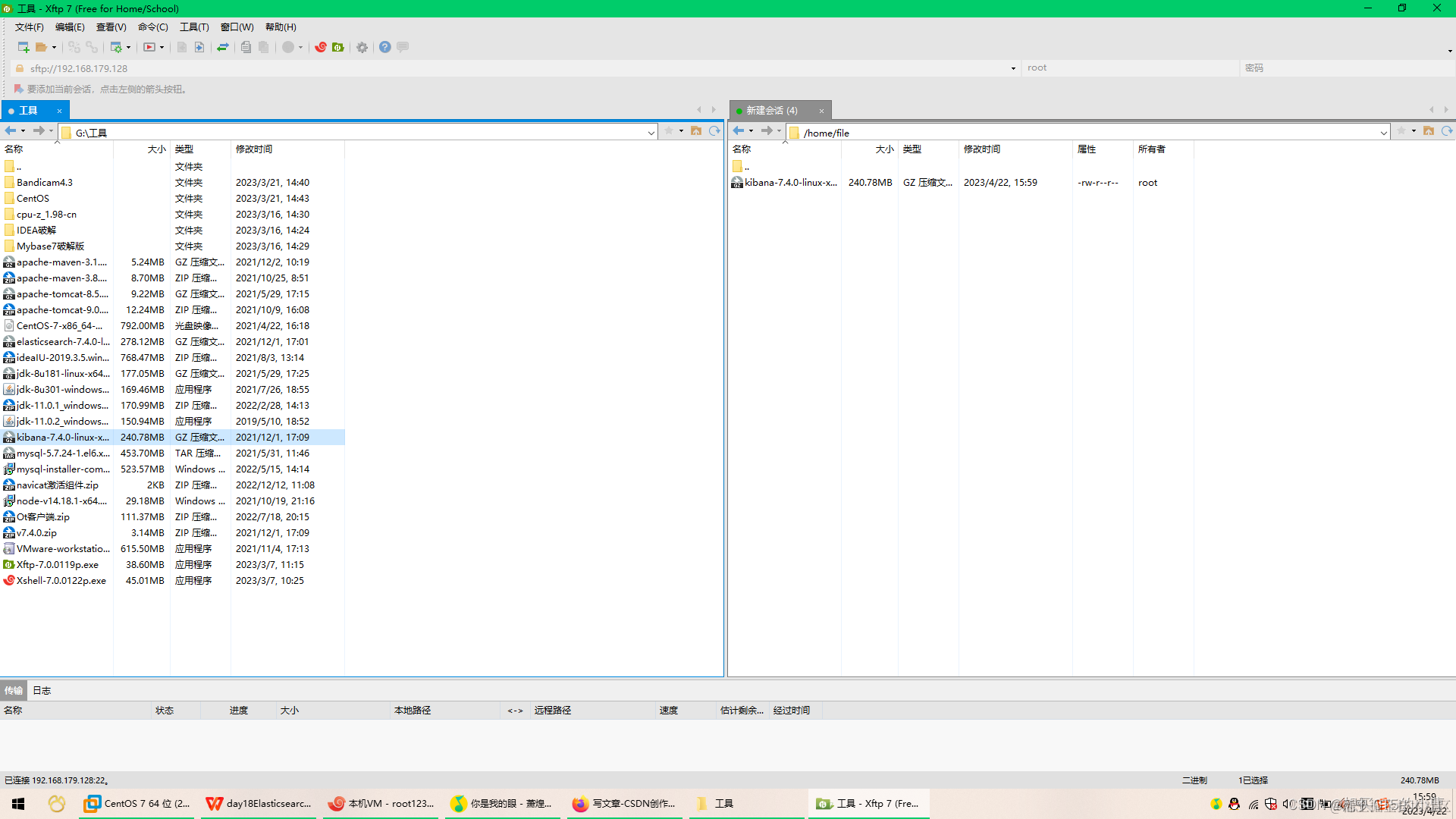 接着进行解压。进入到传输文件夹,找到 tar 包进行解压。