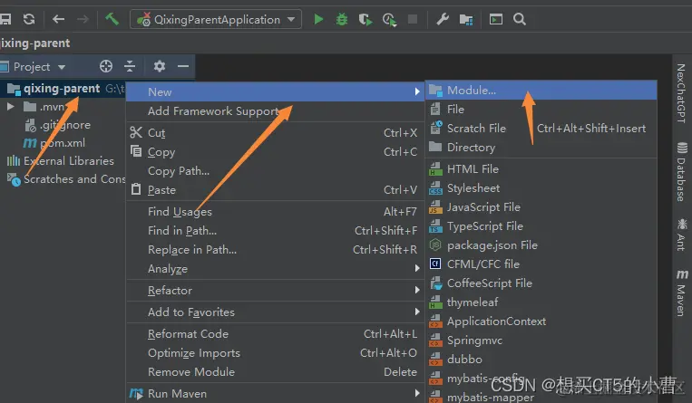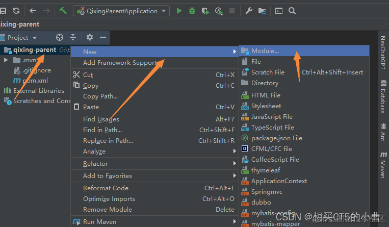 其他模块重复操作,创建qixing-service,qixing-service-api,qixing-web工程。注意pom文件需要修改打包方式