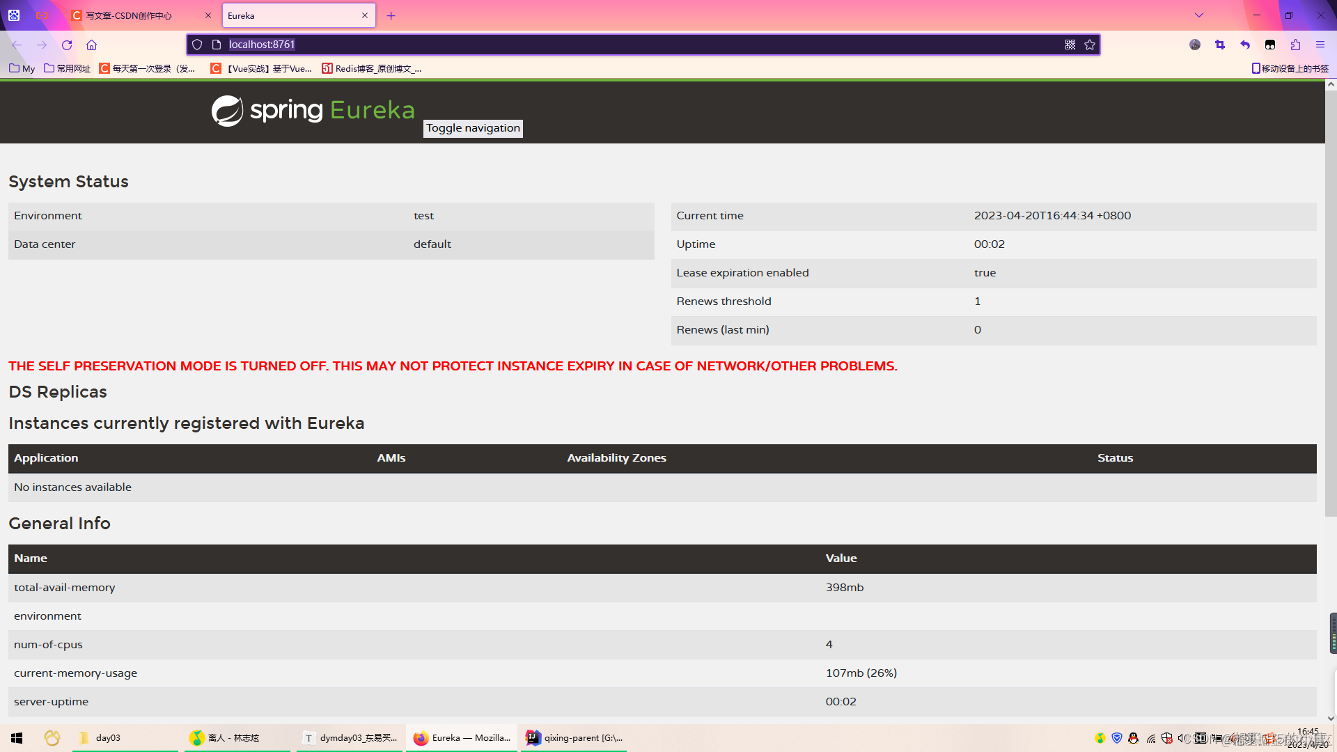 启动可以看到 eureka 主页,访问 http://localhost:8761/