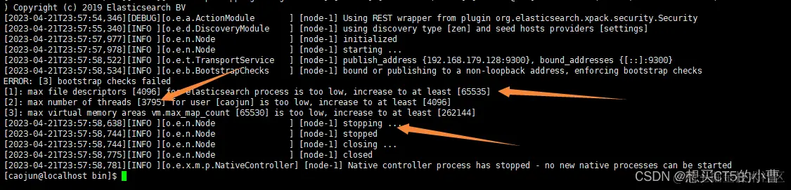 chown -R caojun:caojun /usr/local/es/elasticsearch-7.4.0