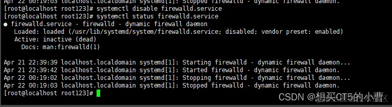 先关闭防火墙,切换到 root,在进行关闭,不同的版本命令不一样,自行百度即可。这里是CentOS 7版本的命令。