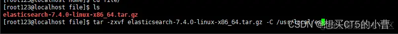 将上传的 es 包进行解压到指定文件夹位置,注意后面的-C 大写。
