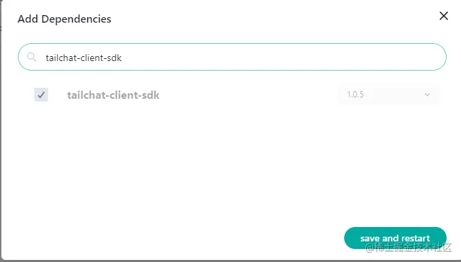 在左下角依赖中安装 Tailchat 官方提供的 tailchat-client-sdk 包用于快速开发