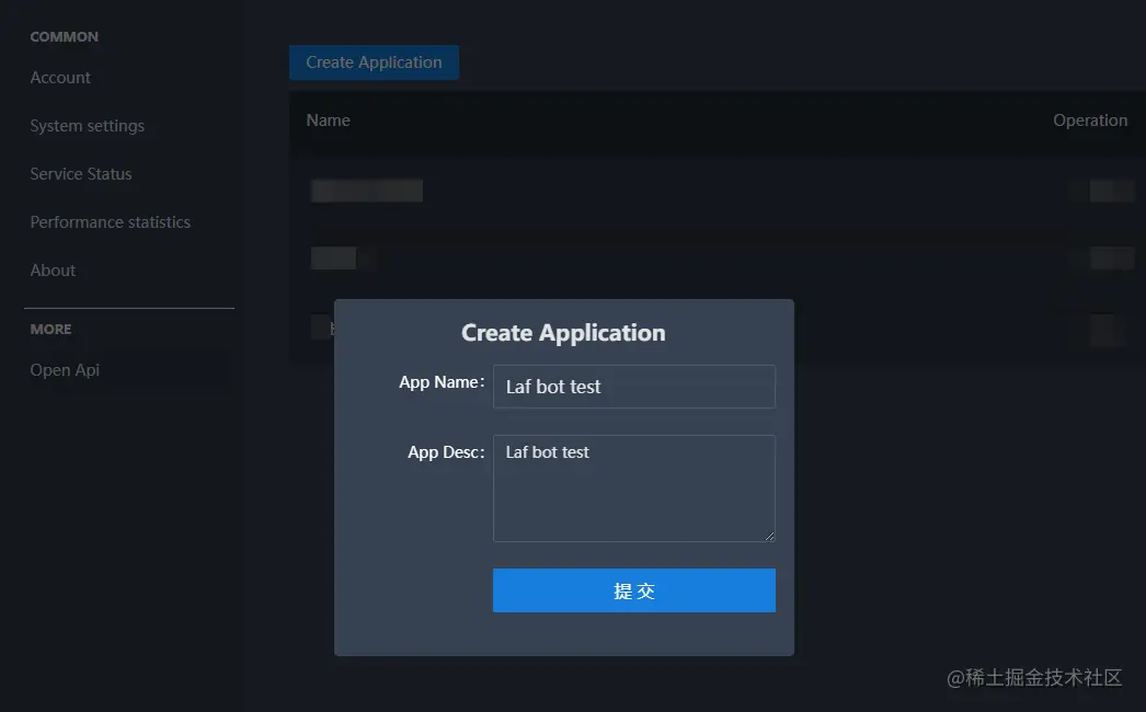 首先我们需要在Tailchat的开放平台中创建一个开放平台应用。