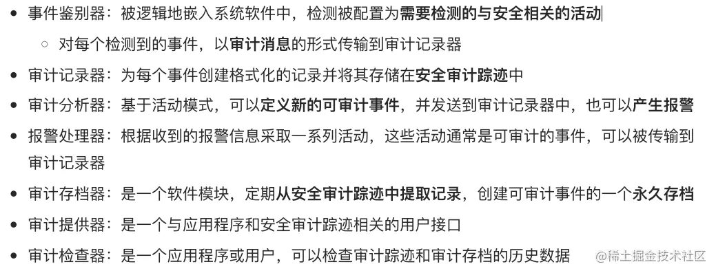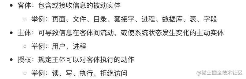 - 引用监控器:对主体访问客体的行为进行仲裁的抽象装置