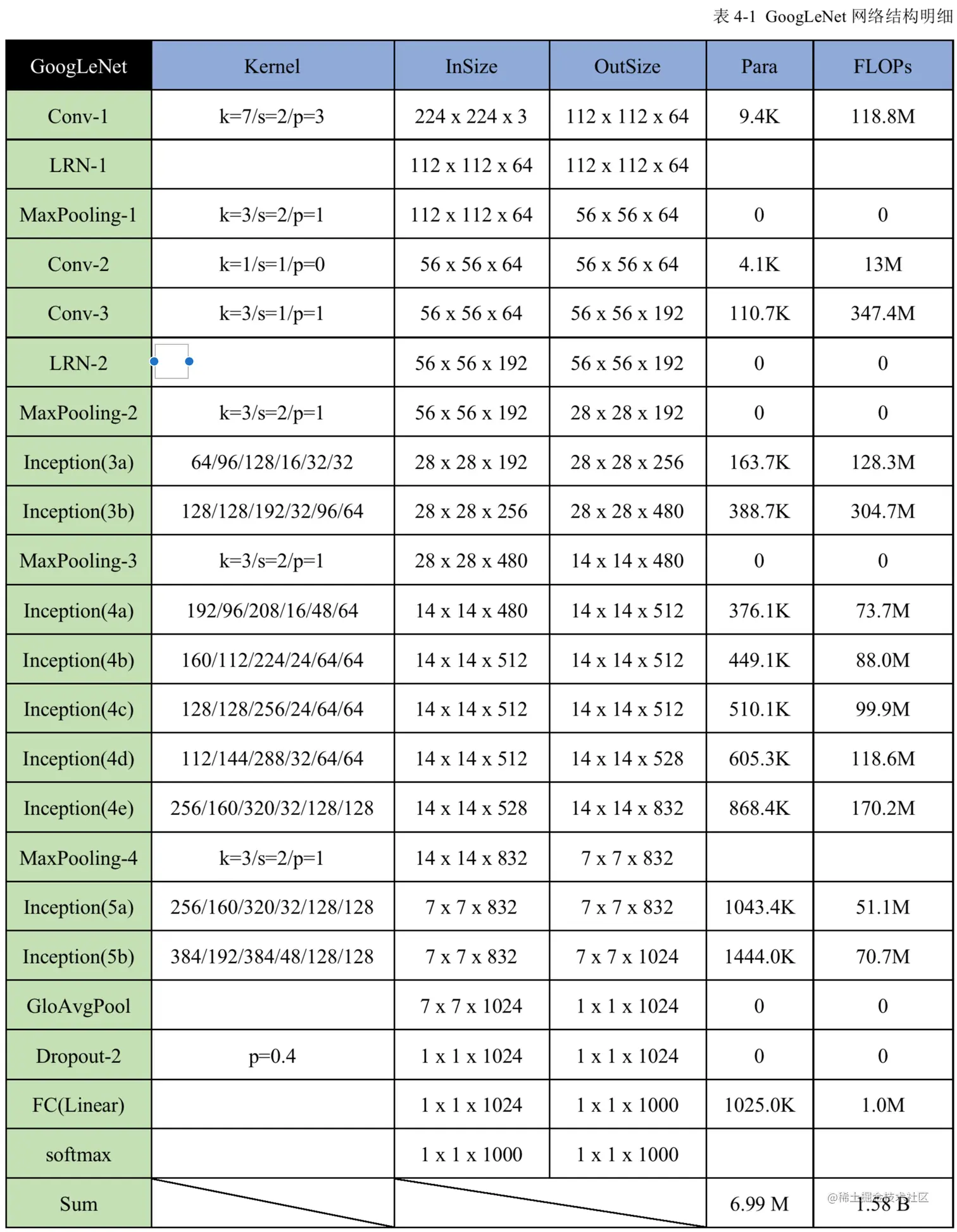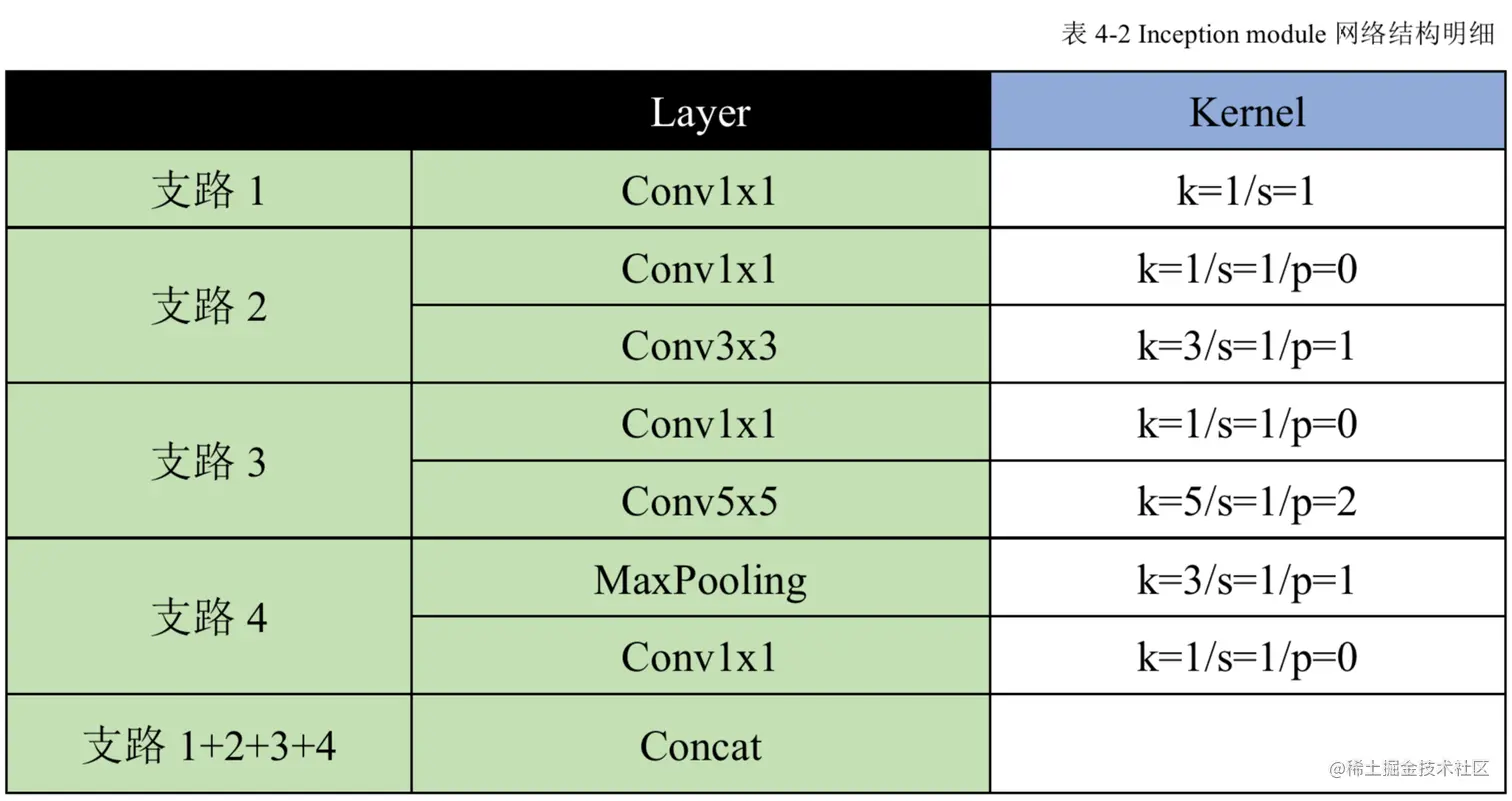(2) 对之前的GoogLeNet也就Inception-v1的inception模块中的维度变化值进行了调整;